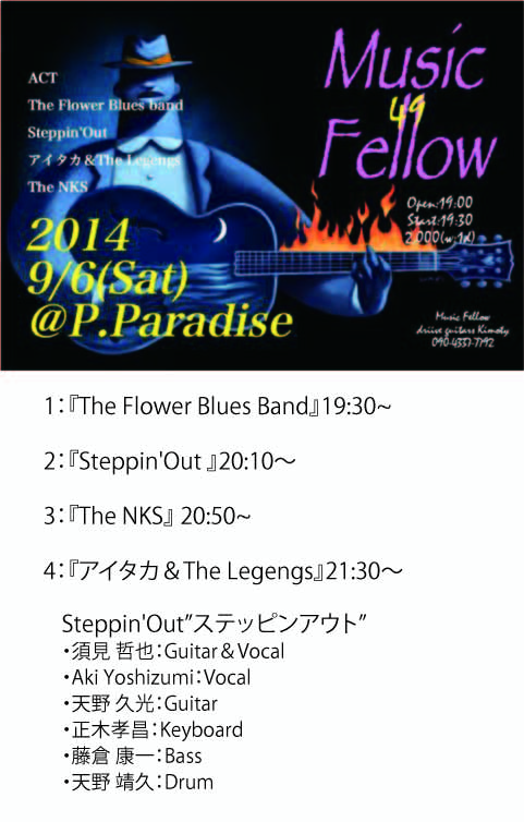 ステッッピンアウト、今回は久しぶりのオリジナルメンバー勢ぞろいのライヴです。