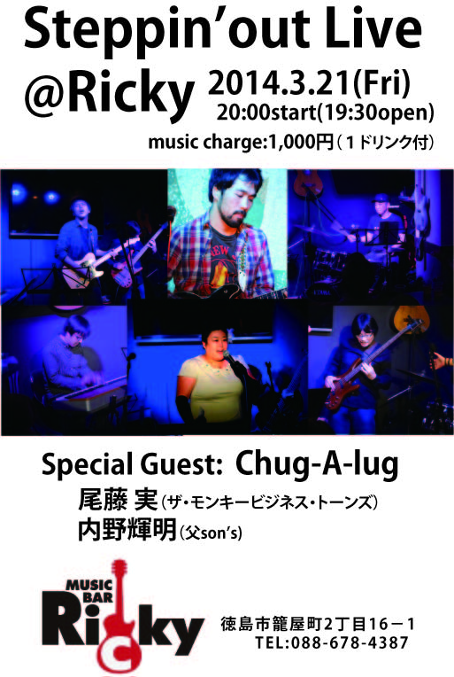 そして「Steppin'out」は、5月4日(日)Rickyへの出演が決定しました。